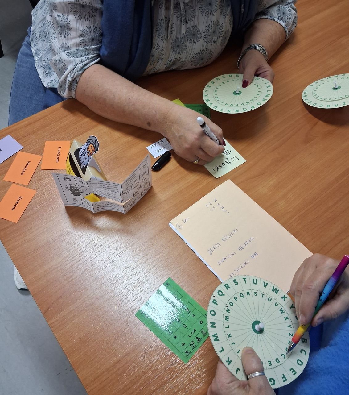 - pracowali z kołami literowymi, kubkami z ukrytymi wiadomościami,