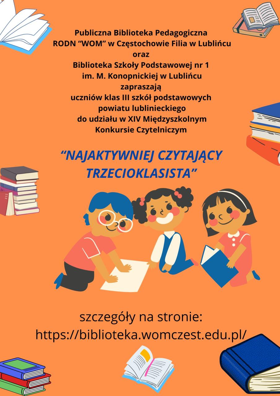 Zapraszamy uczniów klas III szkół podstawowych powiatu lublinieckiego do udziału w XIV Międzyszkolnym Konkursie Czytelniczym "Najaktywniej czytający Trzecioklasista".