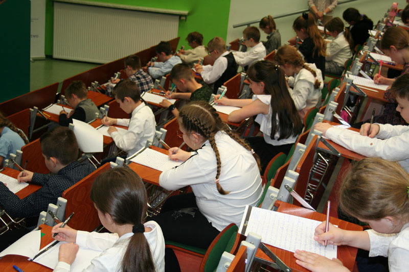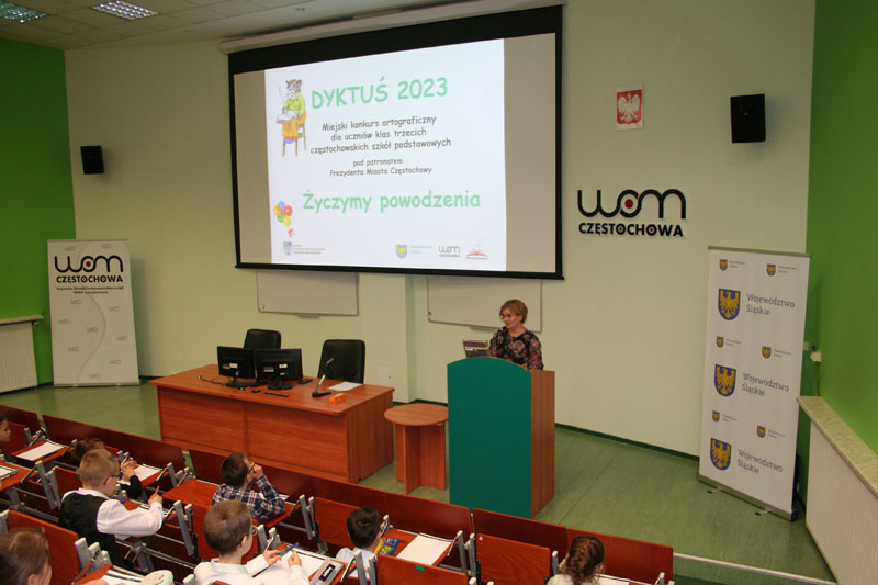 W Auli „Forum” Regionalnego Ośrodka Doskonalenia Nauczycieli „WOM”, po powitaniu przez wicedyrektora RODN „WOM” ds. bibliotek pedagogicznych – Panią Renatę Lipniewską, uczniowie rozpoczęli pisanie dyktanda. Jak każdego roku tekst dyktanda znajdował się w zabezpieczonej kopercie, którą komisyjnie otwarto przy wszystkich uczniach. Zmagania trwały ponad godzinę.