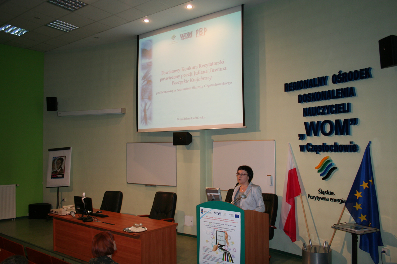 24 października 2013 roku w Regionalnym Ośrodku Doskonalenia Nauczycieli „WOM” w Częstochowie odbył się Powiatowy Konkurs Recytatorski „Poetyckie Krajobrazy”, poświęcony poezji Juliana Tuwima. Konkurs adresowany do uczniów gimnazjów miasta Częstochowy oraz powiatu częstochowskiego zorganizowała Publiczna Biblioteka Pedagogiczna RODN „WOM” w Częstochowie.