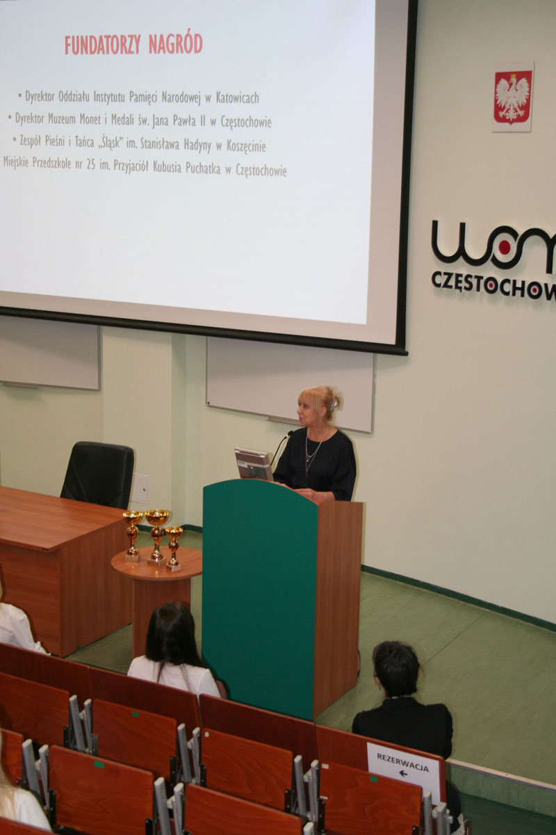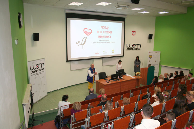 Przybyłych uczestników oraz gości powitała dyrektor Regionalnego Ośrodka Doskonalenia Nauczycieli „WOM” w Częstochowie Pani Aneta Żurek. Zaproszenie na Przegląd Pieśni i Piosenek Patriotycznych przyjęła Pani Kinga Lis – pracownik Przystanku Historia Centrum Edukacyjnego IPN im. Gen. Janusza Gąsiorowskiego w Częstochowie.
